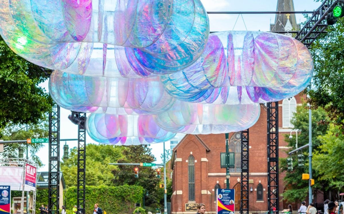 Conceived during the pandemic when the artists, like many of us, were faced with uncertainty and began to more closely consider the delicate balance of stability and the fleeting nature of time, the studio “endeavoured to communicate this feeling of transient beauty and the need to live in the moment through the idea of the bubble.”